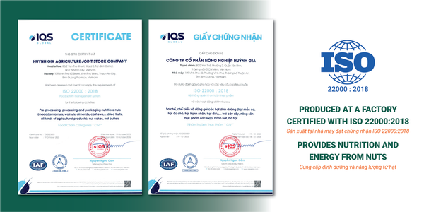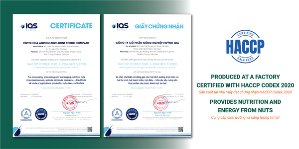 Sản phẩm thanh hạt dinh dưỡng Hạt điều – Trái cây Faminuts được sản xuất tại nhà máy đạt tiêu chuẩn quốc tế và chứng nhận chất lượng ISO, HACCP.